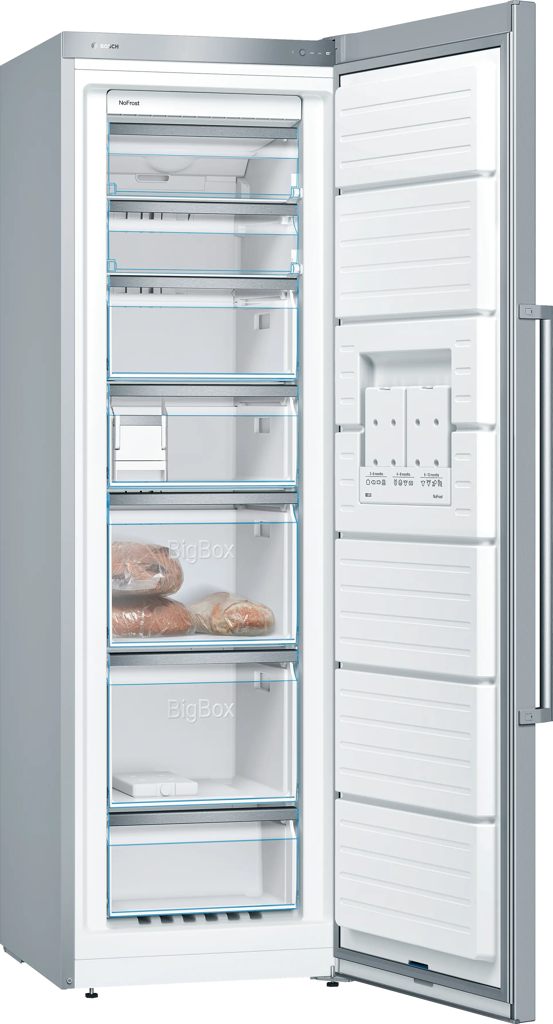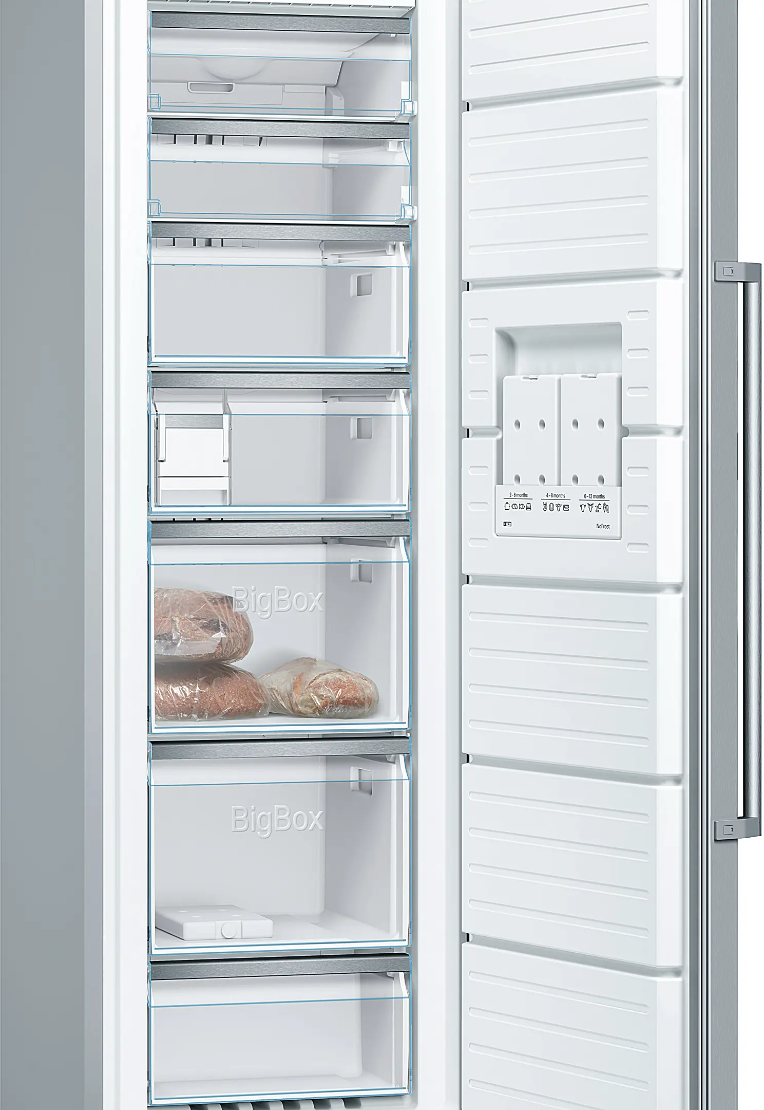 VarioZone: irrotettavat lasihyllyt ja laatikot antavat tarvittaessa lisää tilaa pakastimeen.