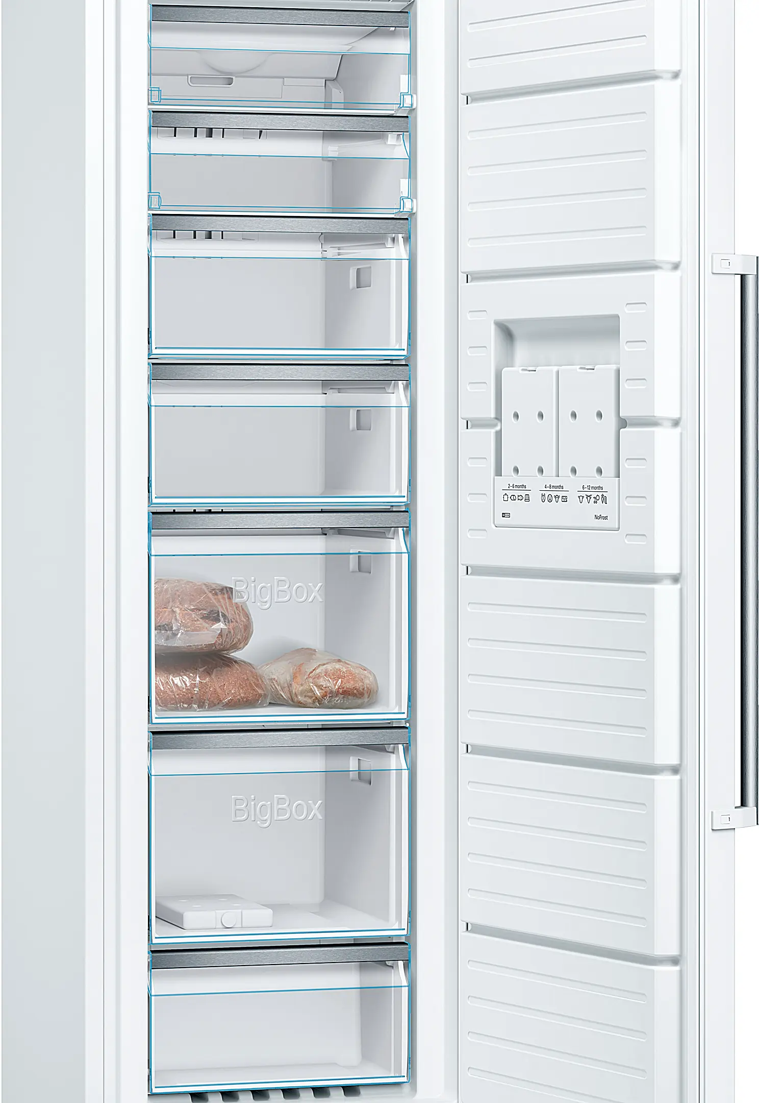 VarioZone: irrotettavat lasihyllyt ja laatikot antavat tarvittaessa lisää tilaa pakastimeen.
