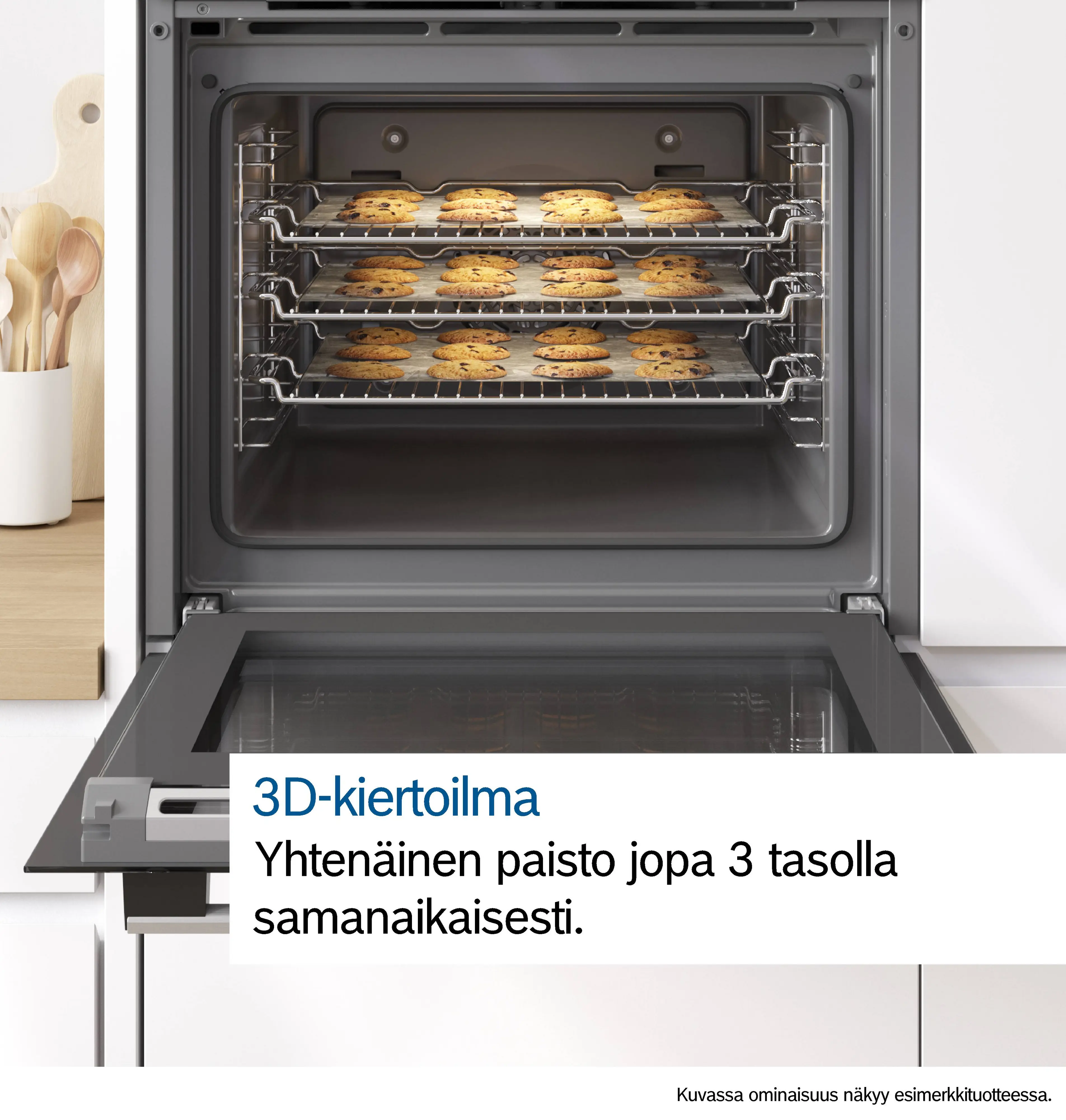 Home Connect - verkkoon liitettävä kodinkoneAlaviite 1: Tarjoamme ajoittain päivityksiä turvataksemme kytketyn kodinkoneen toiminnot (erityisesti tietoturvan). Jos haluat saada tiedon, kun päivitys on saatavilla Home Connect -yhteensopivalle laitteellesi, toimi seuraavasti: Lataa Home Connect -sovellus. Rekisteröi ja liitä laite sovelluksessa. Lisätietoja on sitten saatavilla Home Connect -sovelluksessa.,Alaviite 2: Osa laitteen ominaisuuksista on käytettävissä ainoastaan silloin, kun laite on yhdistetty Home Connect -tiliin ja SingleKey ID -tiliin Internetin kautta. Home Connect on Home Connect GmbH:n palvelu. Lisätietoja Home Connectista on osoitteessa www.home-connect.com.