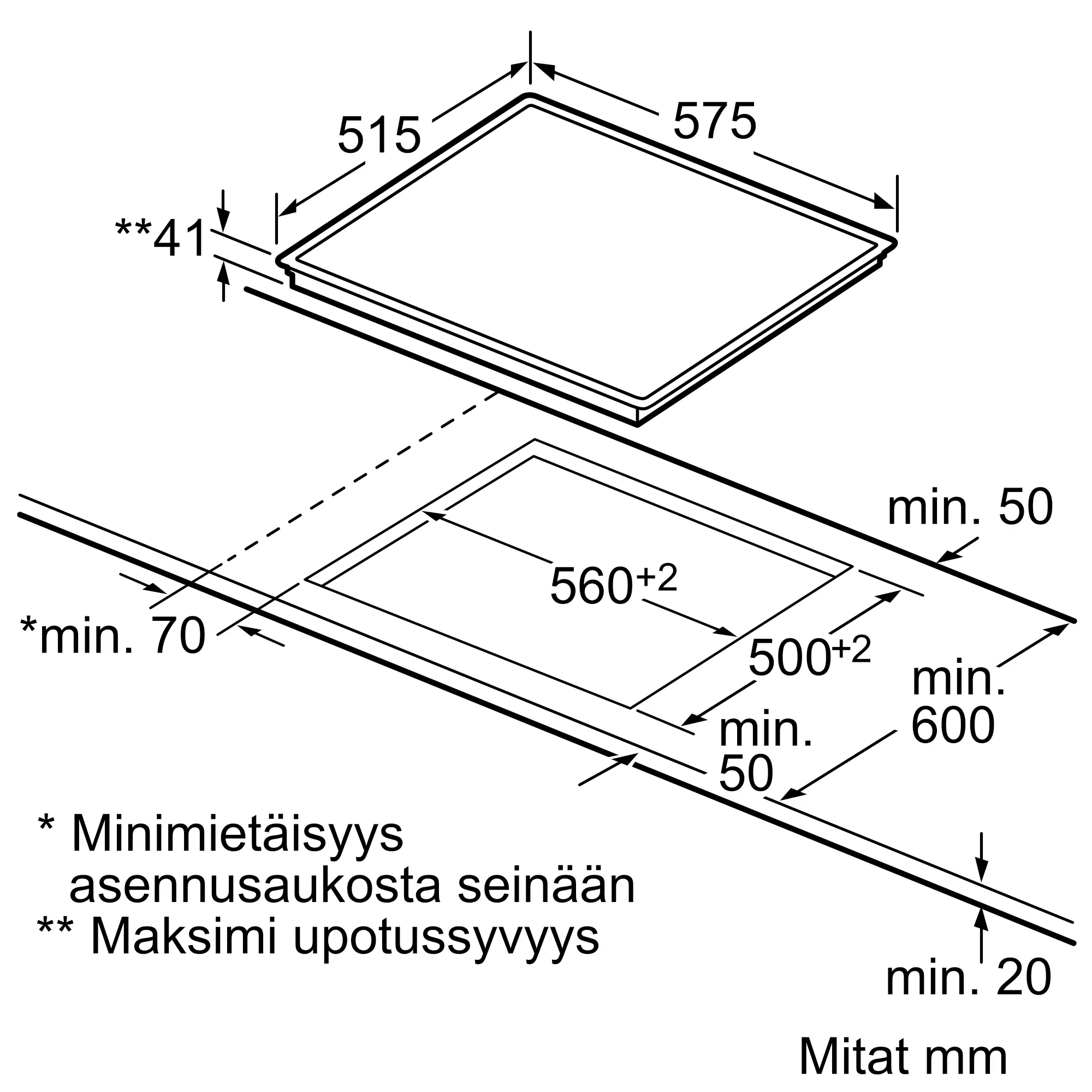 Home Connect - verkkoon liitettävä kodinkone Alaviite 1: Tarjoamme ajoittain päivityksiä turvataksemme kytketyn kodinkoneen toiminnot (erityisesti tietoturvan). Jos haluat saada tiedon, kun päivitys on saatavilla Home Connect -yhteensopivalle laitteellesi, toimi seuraavasti: Lataa Home Connect -sovellus. Rekisteröi ja liitä laite sovelluksessa. Lisätietoja on sitten saatavilla Home Connect -sovelluksessa.,Alaviite 2: Osa laitteen ominaisuuksista on käytettävissä ainoastaan silloin, kun laite on yhdistetty Home Connect -tiliin ja SingleKey ID -tiliin Internetin kautta. Home Connect on Home Connect GmbH:n palvelu. Lisätietoja Home Connectista on osoitteessa www.home-connect.com.