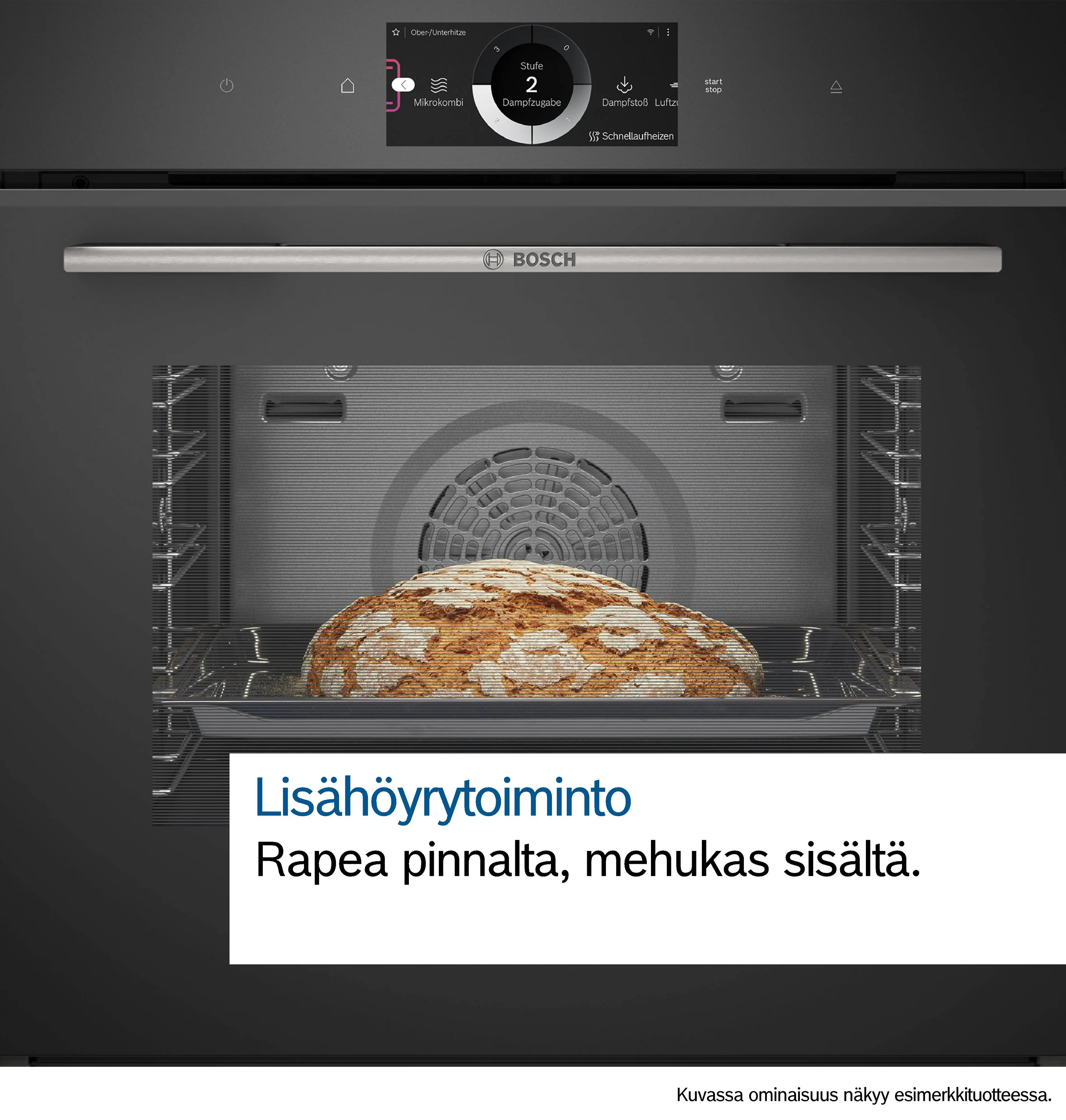 Home Connect - verkkoon liitettävä kodinkoneAlaviite 1: Tarjoamme ajoittain päivityksiä turvataksemme kytketyn kodinkoneen toiminnot (erityisesti tietoturvan). Jos haluat saada tiedon, kun päivitys on saatavilla Home Connect -yhteensopivalle laitteellesi, toimi seuraavasti: Lataa Home Connect -sovellus. Rekisteröi ja liitä laite sovelluksessa. Lisätietoja on sitten saatavilla Home Connect -sovelluksessa.,Alaviite 2: Osa laitteen ominaisuuksista on käytettävissä ainoastaan silloin, kun laite on yhdistetty Home Connect -tiliin ja SingleKey ID -tiliin Internetin kautta. Home Connect on Home Connect GmbH:n palvelu. Lisätietoja Home Connectista on osoitteessa www.home-connect.com.