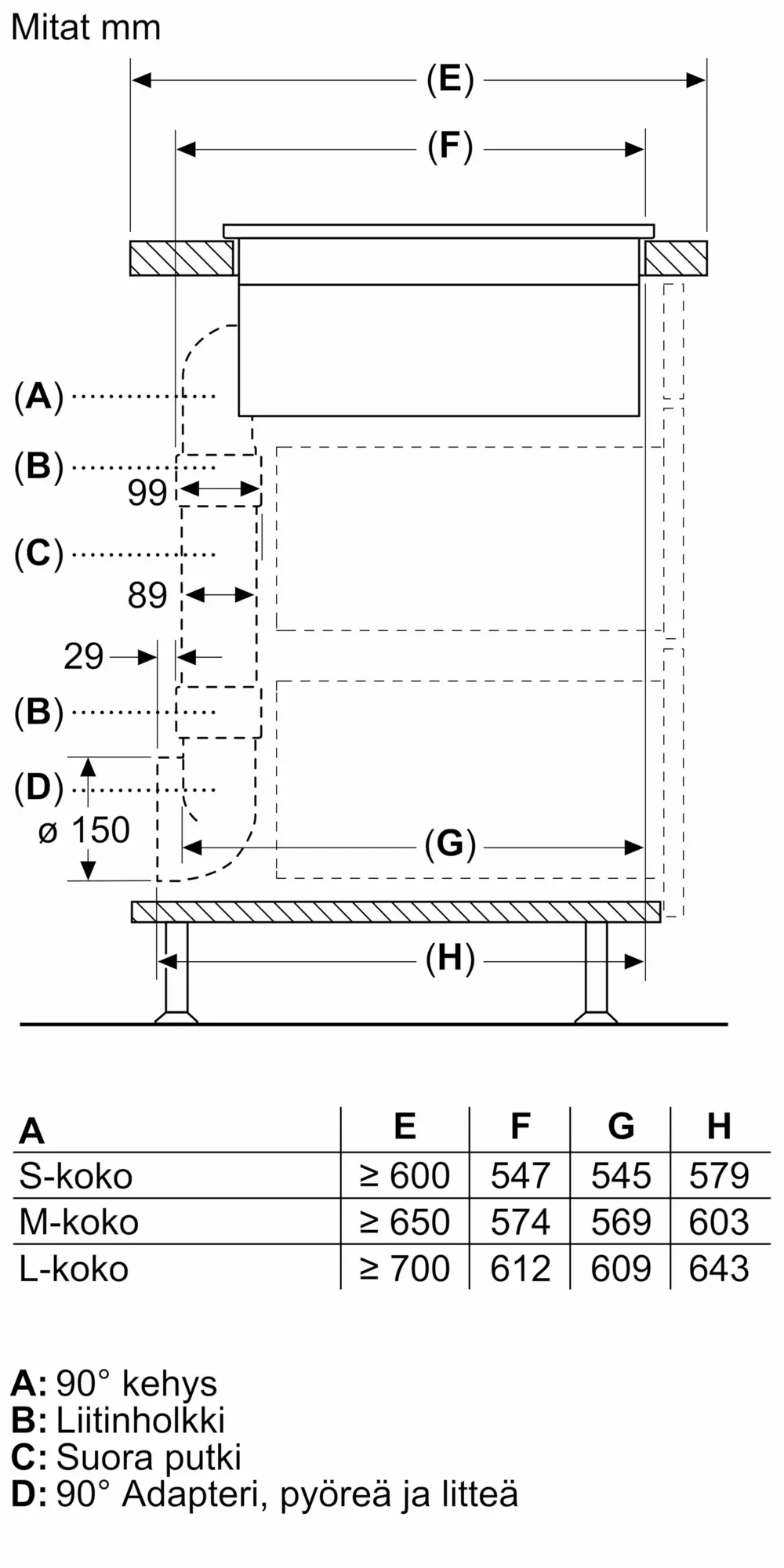 Hormiin liitettävä / Huoneilmaan palauttava (lisätarvike saatavilla erikseen)