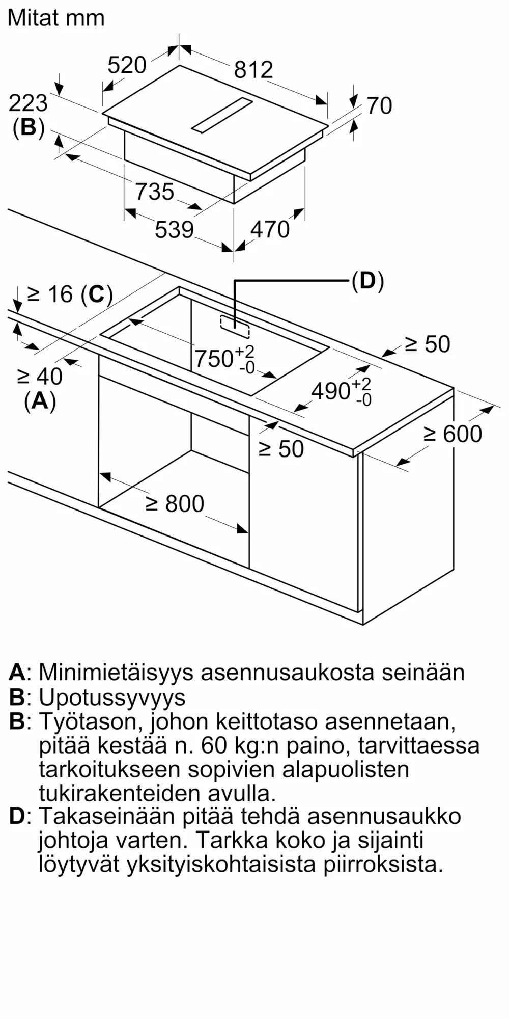 223x812x520 mm