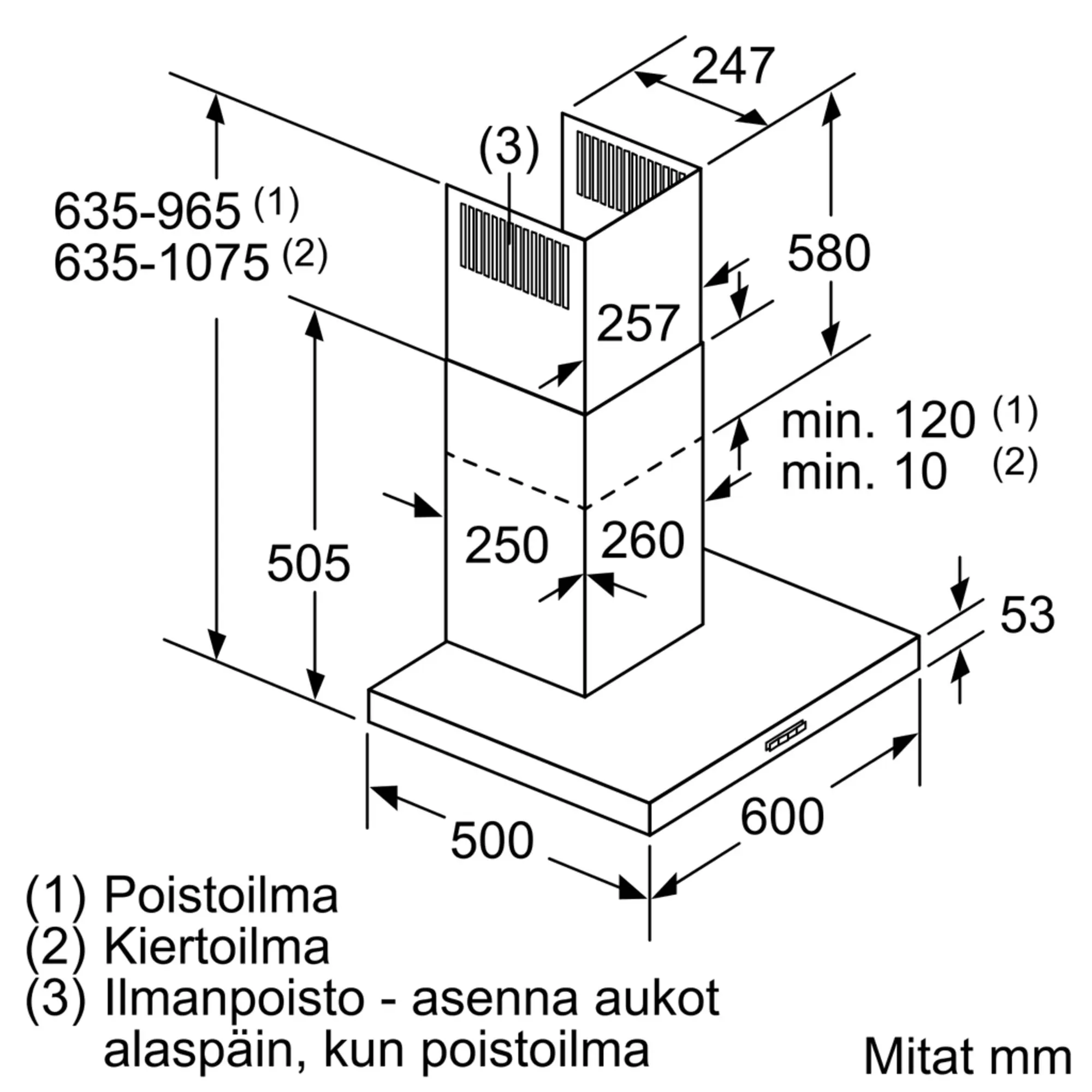 Hormiin liitettävä / Huoneilmaan palauttava (lisätarvike saatavilla erikseen)