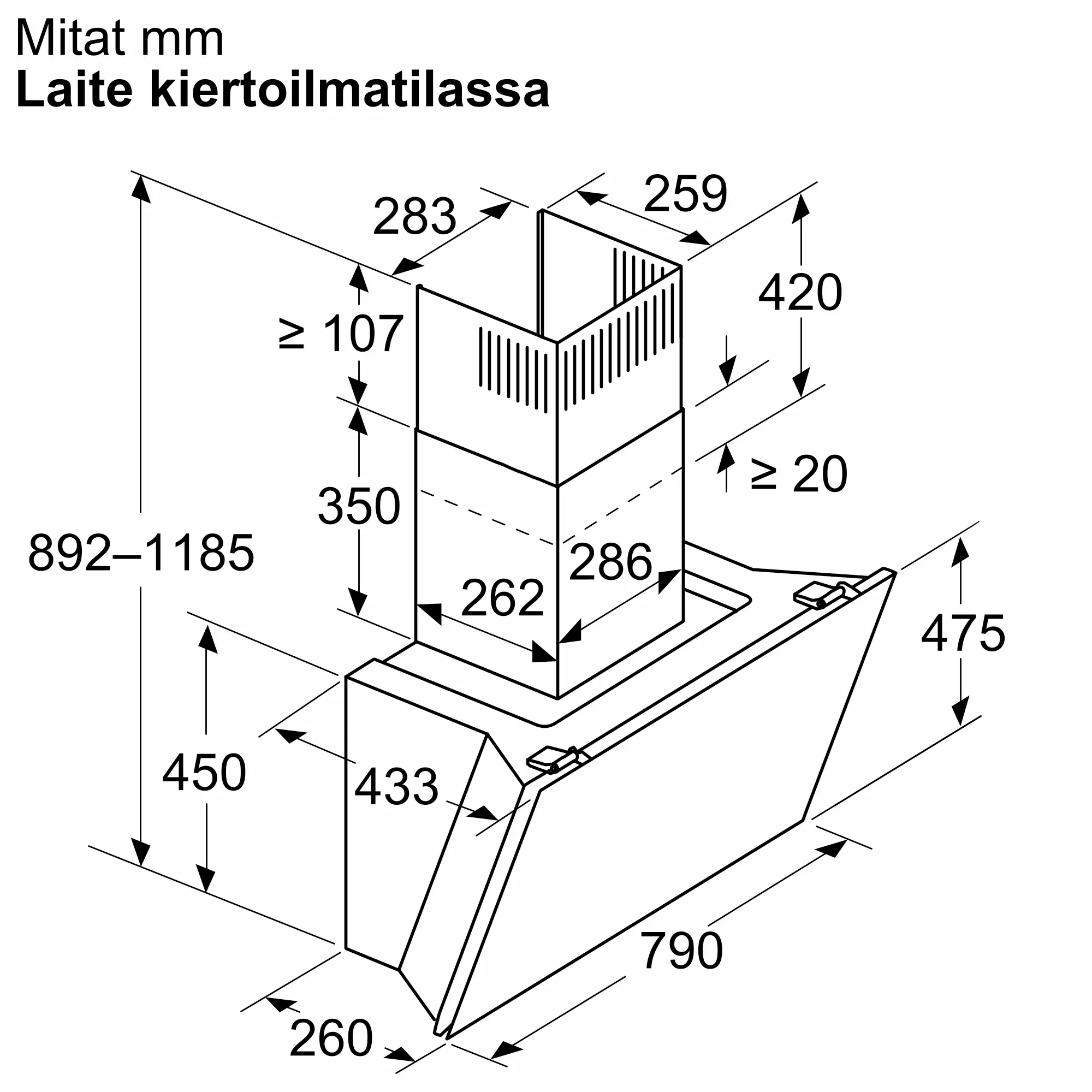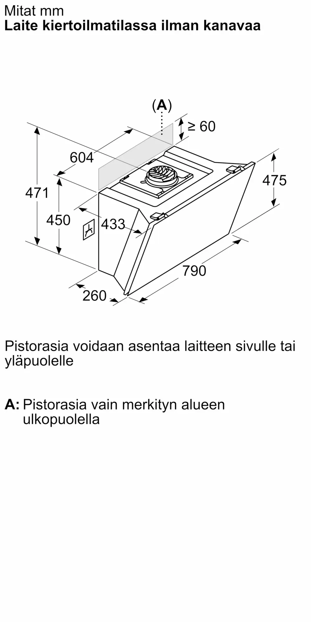 Hormiin liitettävä / Huoneilmaan palauttava (lisätarvike saatavilla erikseen)