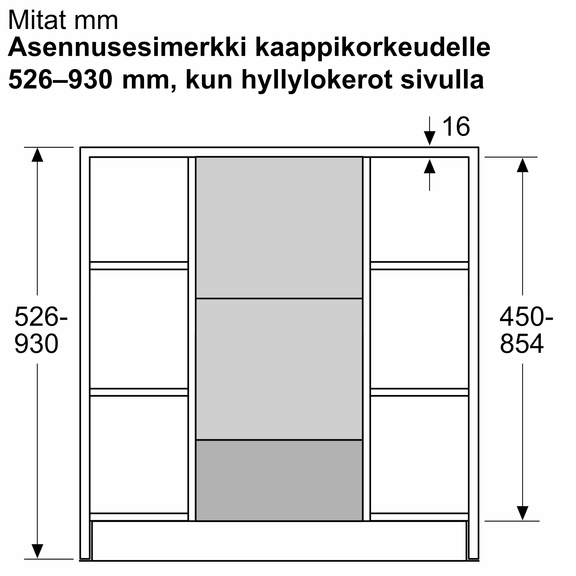 Kaksiosainen hormisetti, jonka avulla korkeus voidaan säätää keittiönkaappiin sopivaksi.