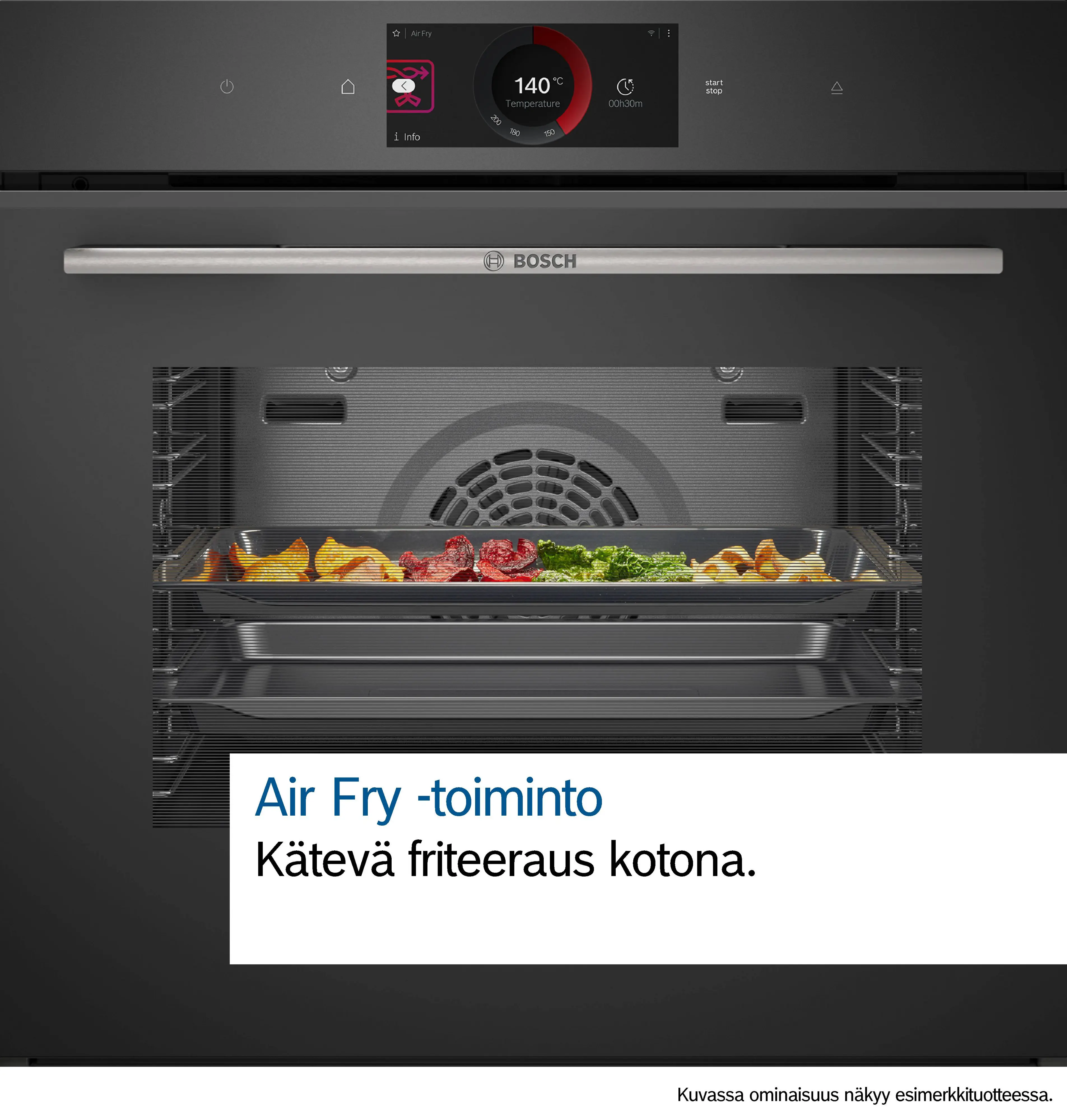 Home Connect - verkkoon liitettävä kodinkoneAlaviite 1: Tarjoamme ajoittain päivityksiä turvataksemme kytketyn kodinkoneen toiminnot (erityisesti tietoturvan). Jos haluat saada tiedon, kun päivitys on saatavilla Home Connect -yhteensopivalle laitteellesi, toimi seuraavasti: Lataa Home Connect -sovellus. Rekisteröi ja liitä laite sovelluksessa. Lisätietoja on sitten saatavilla Home Connect -sovelluksessa.,Alaviite 2: Osa laitteen ominaisuuksista on käytettävissä ainoastaan silloin, kun laite on yhdistetty Home Connect -tiliin ja SingleKey ID -tiliin Internetin kautta. Home Connect on Home Connect GmbH:n palvelu. Lisätietoja Home Connectista on osoitteessa www.home-connect.com.